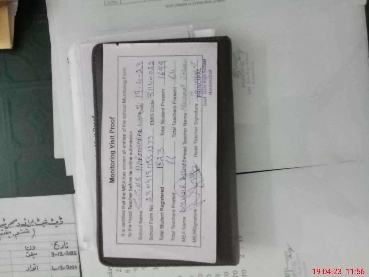 | Attendance Register | Head Teacher | MEA with School | Visit Proof |