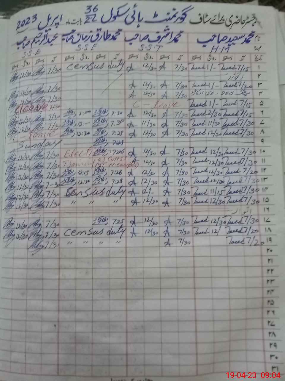 | 35**** | Sa**** Kh**** | PST | Regular | 0 | 31 | 0 | 0 | 0 | 0 | 0 | 0 | 0 | Other |