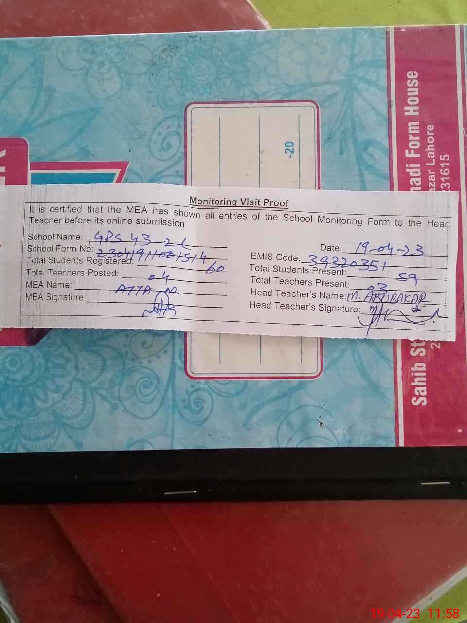 | EMIS Code: 39320351 | Name of School: GPS CHAK 43/2-L | |||