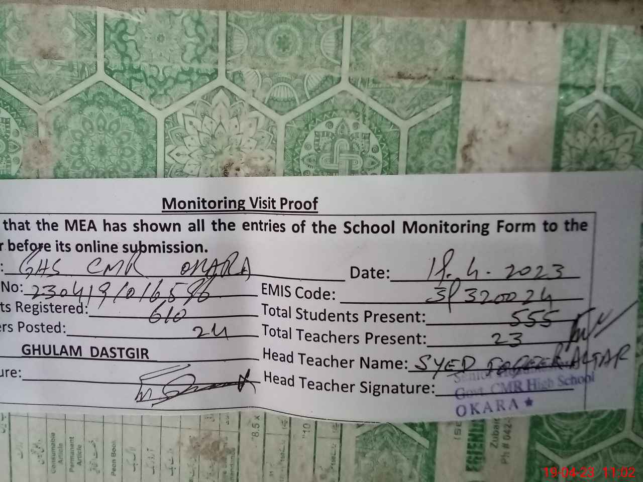 | EMIS Code: 39320024 | Name of School: GHS CMR OKARA | |||
