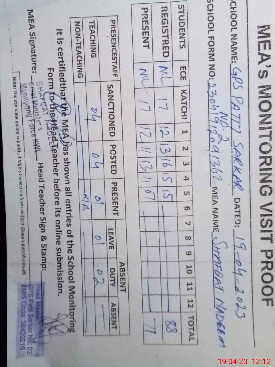 | EMIS Code: 36420216 | Name of School: GPS PATTI SARKAR NO.2 P/O 3/AH KHANEWAL | |||