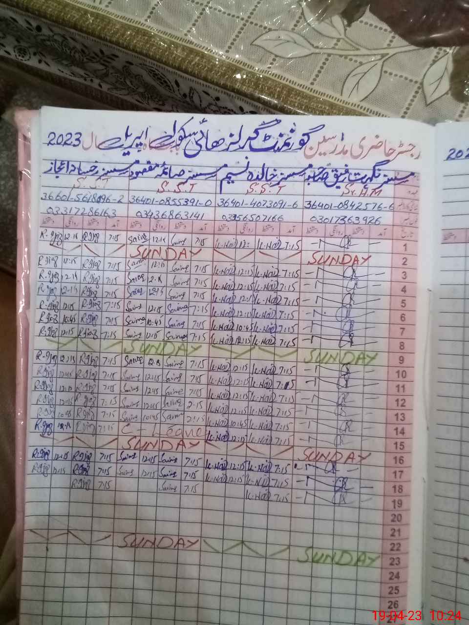 | Name: NI**** RA**** Designation: (School Headmaster's/Headmistress's) S.HM Phone/Cell Number: 03**** |