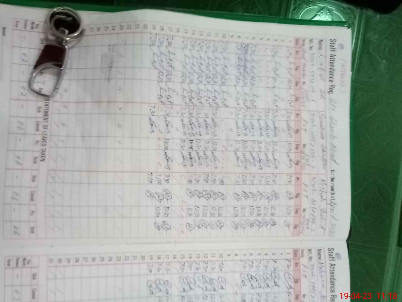 | Leave | Duty | Absent | Maternity | Medical | Ex- Pak |