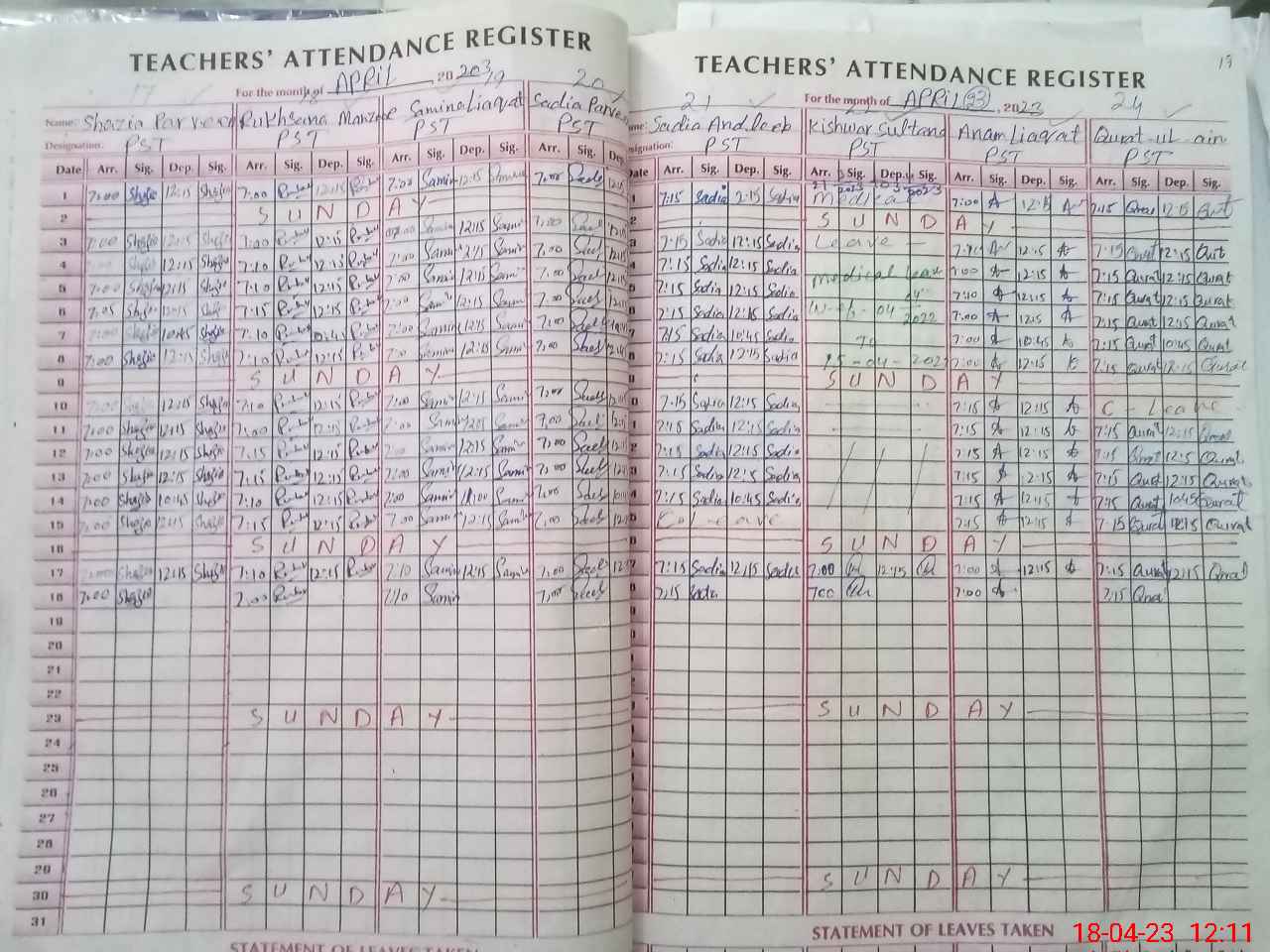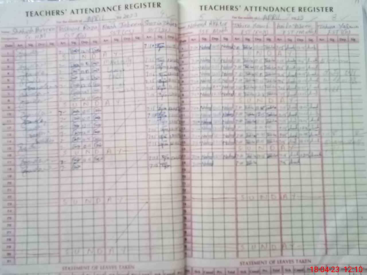 | 36**** | Ta**** Ya**** | Regular | 0 | 0 | 0 | 0 | 0 | 0 | 0 | 0 | 0 | Exam Duty | |