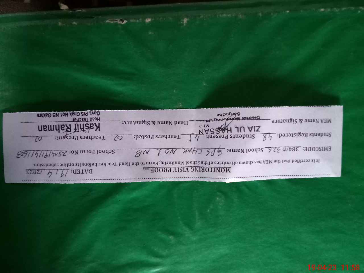 | EMIS Code: 38410326 | Name of School: GPS CHAK NO.1 NB GAKHRA | |||