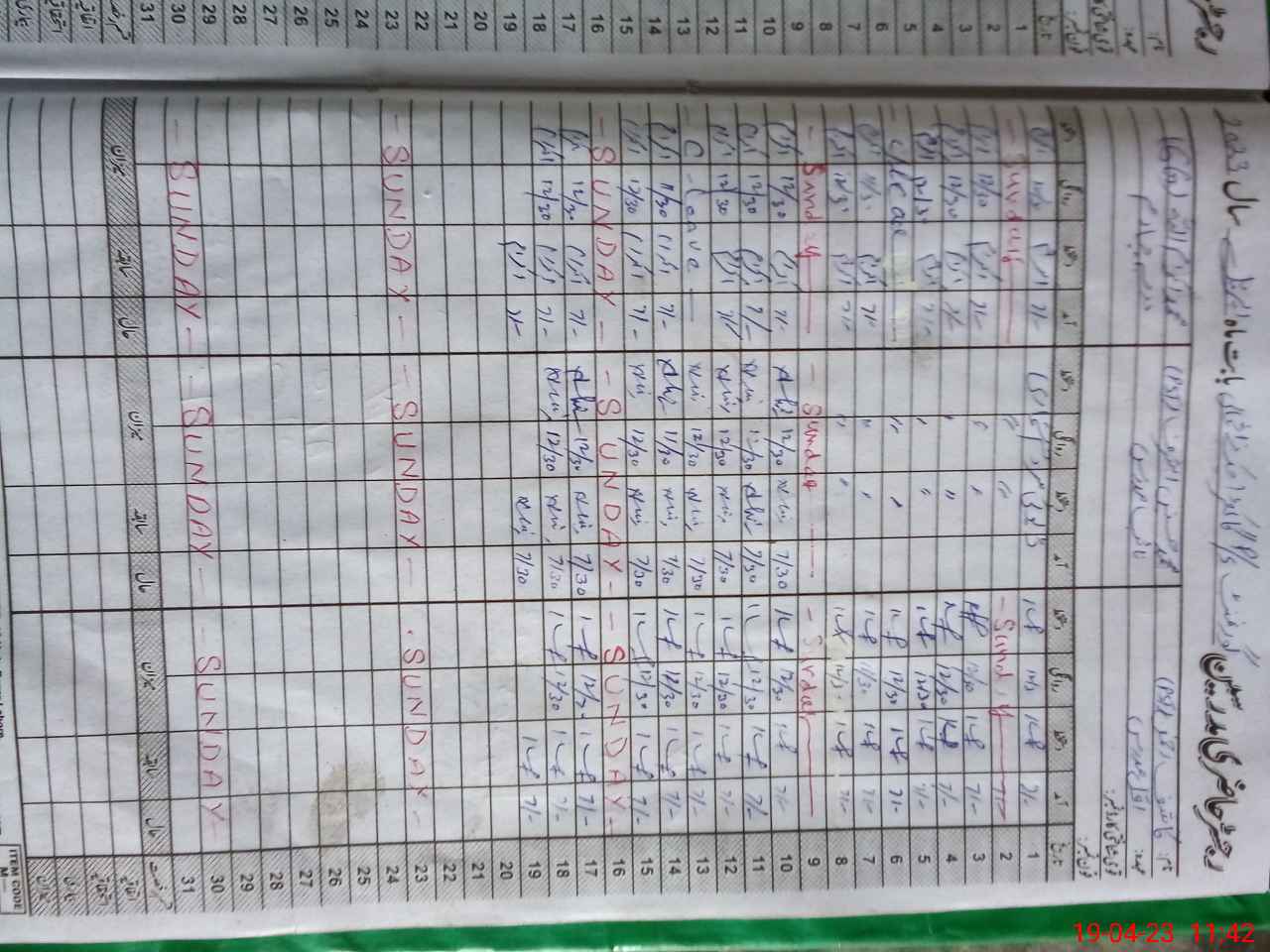 | CNIC | Full Name | Designation | R/C | Absence During Last Calender Month |