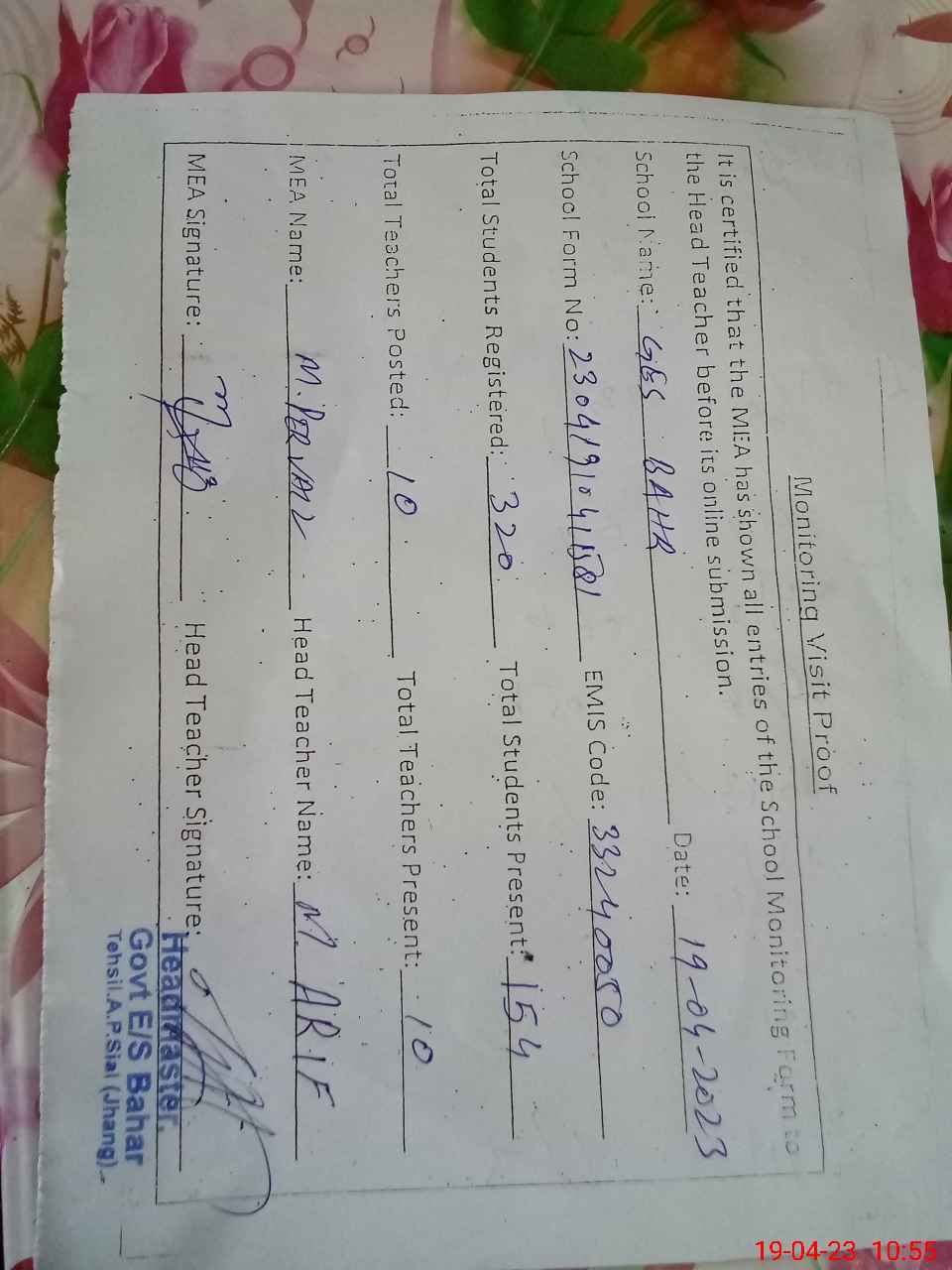 | Certified that this School was Inspected by the Undersigned MEA/DMO Today and the Information Stated Above is as Per Record. | |||||