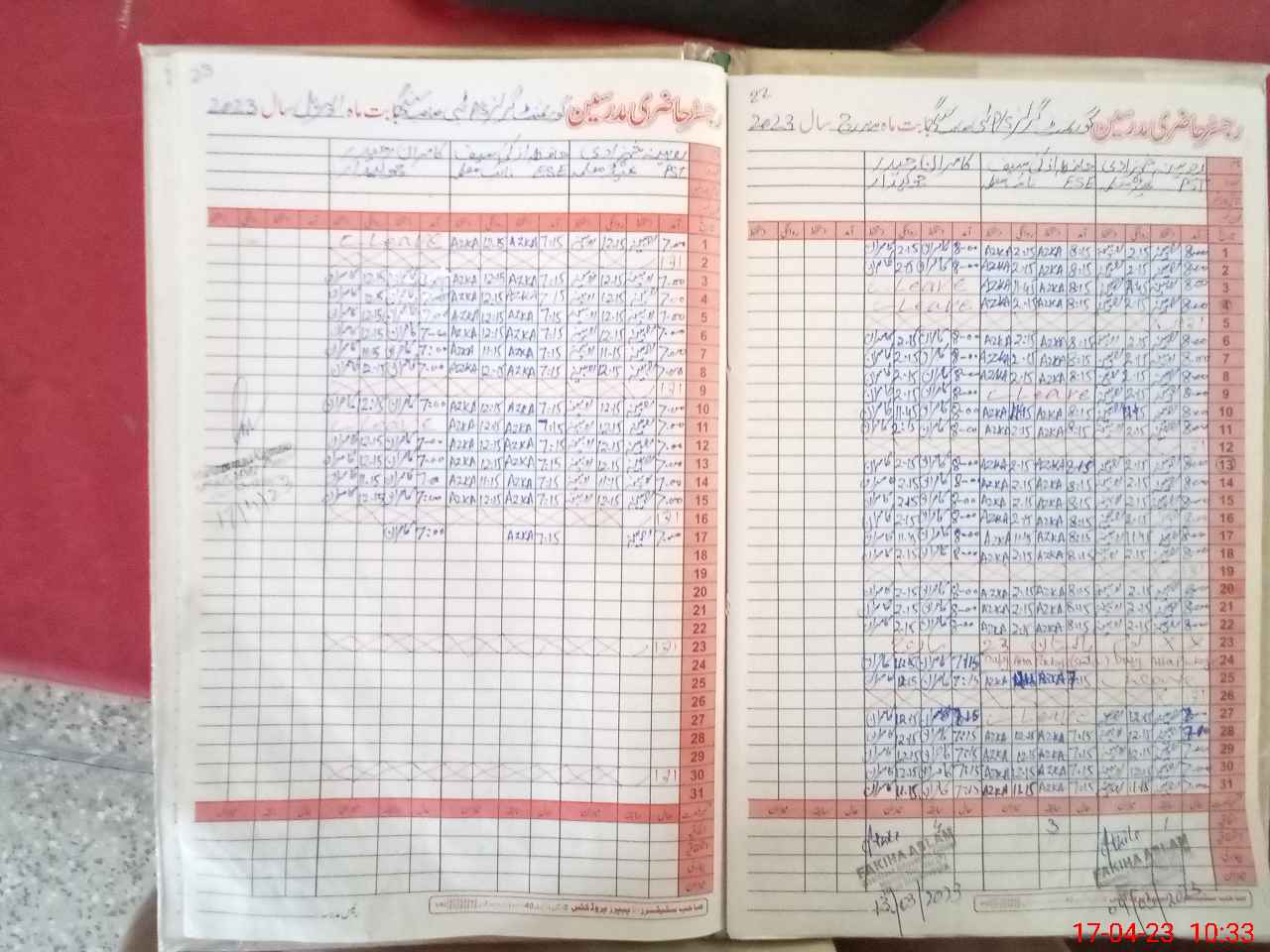 | CNIC | Full Name | Designation | R/C | Absence During Last Calender Month |
