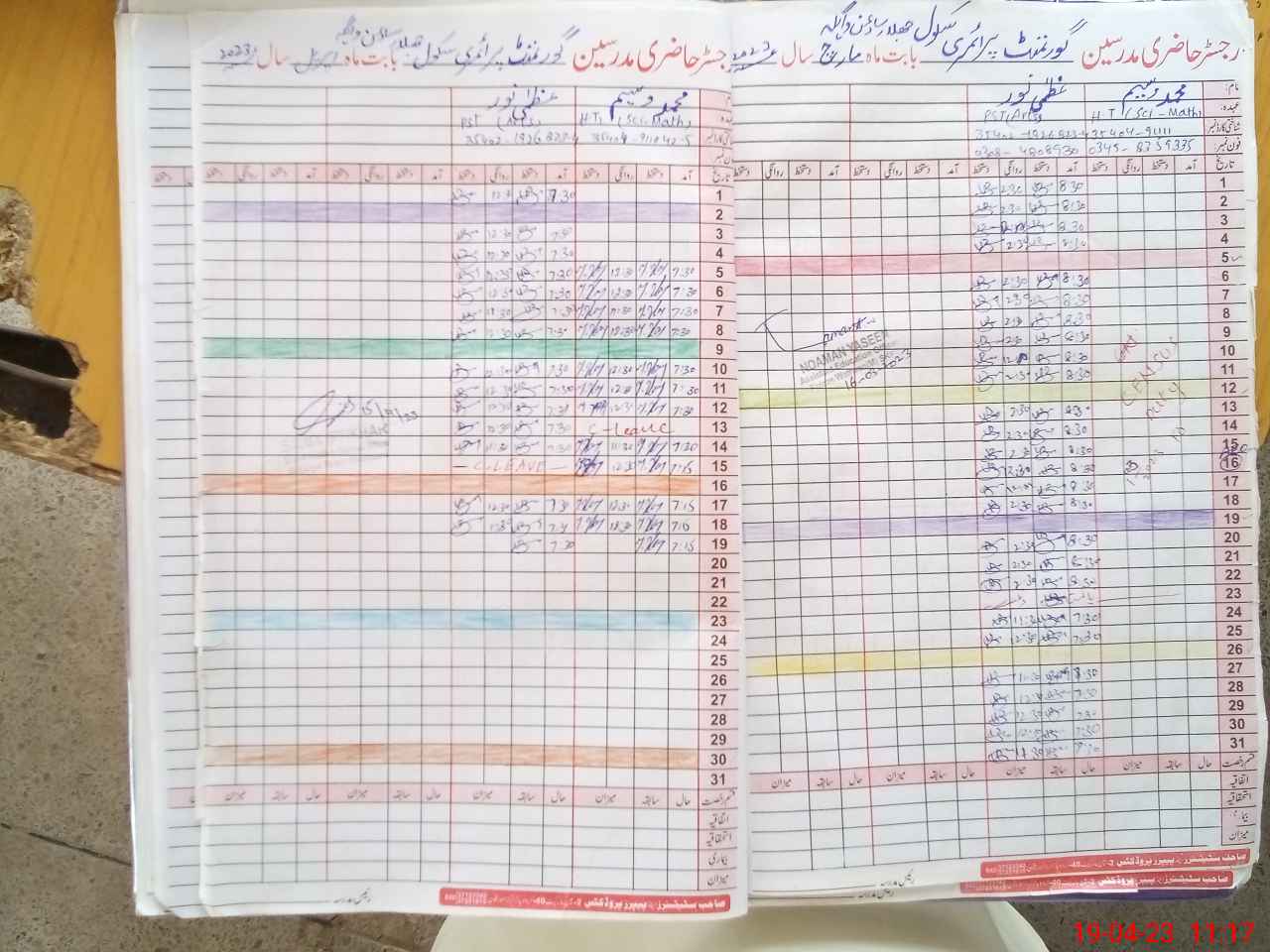 | CNIC | Full Name | Designation | R/C | Absence During Last Calender Month |