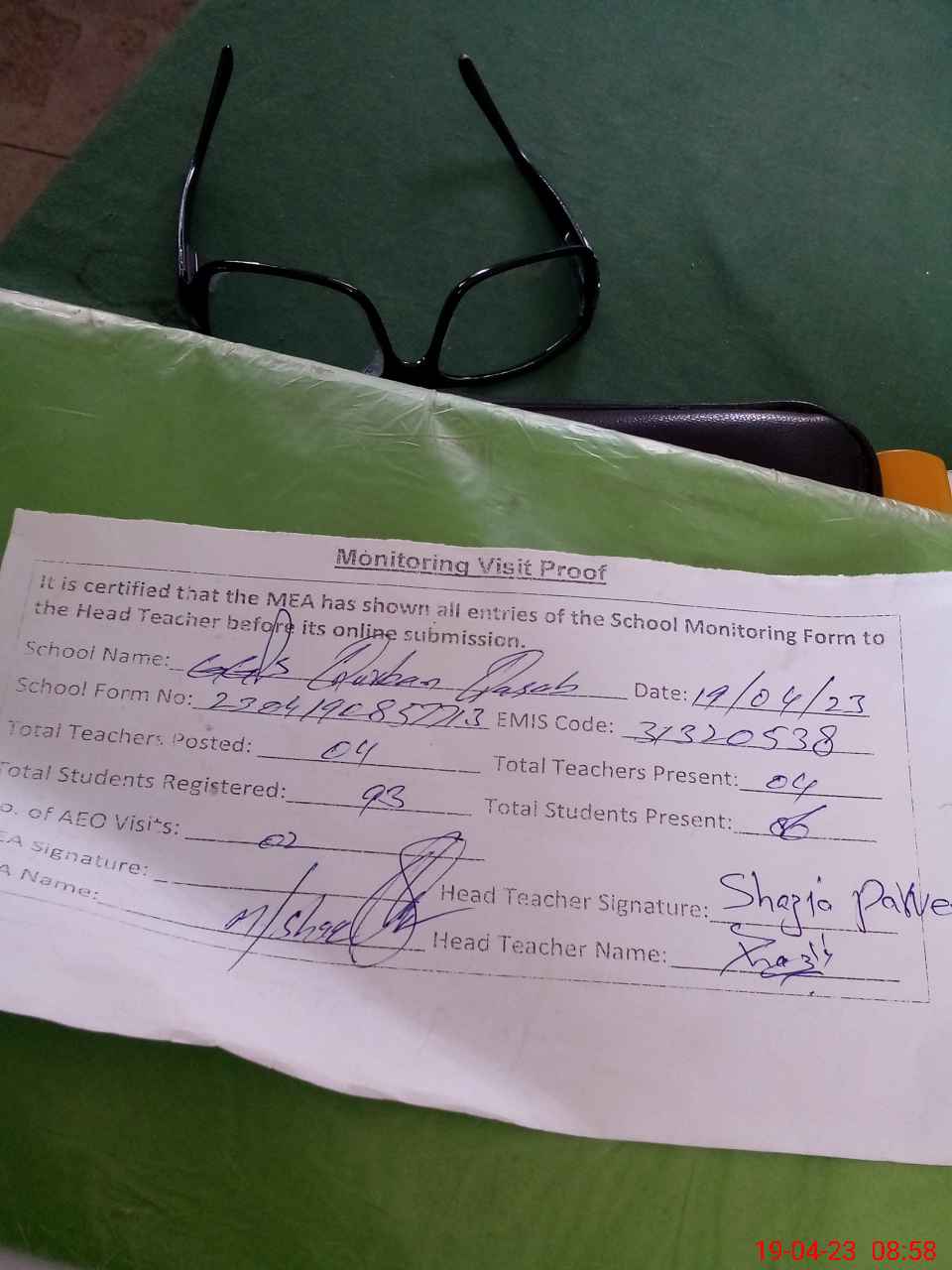 | Attendance Register | Head Teacher | MEA with School | Visit Proof |