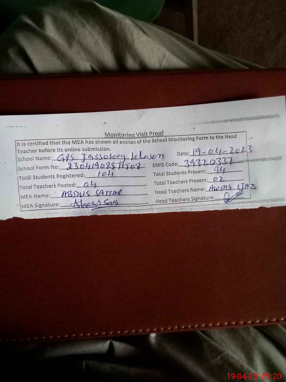 | EMIS Code: 39320337 | Name of School: GPS JASSO KE KALASON | |||