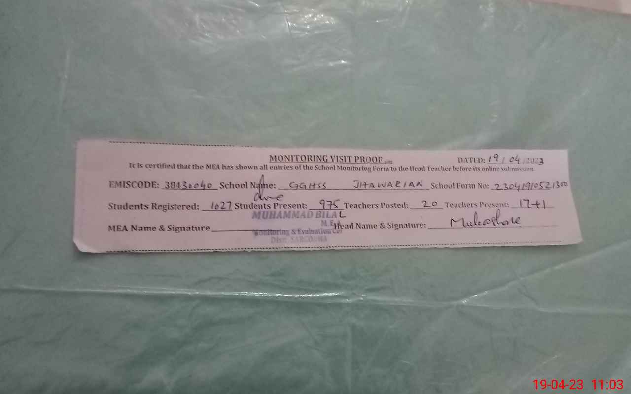 | EMIS Code: 38430040 | Name of School: GGHSS JHAWRIAN | |||