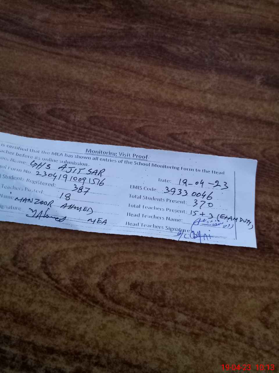 | Certified that this School was Inspected by the Undersigned MEA/DMO Today and the Information Stated Above is as Per Record. | |||||