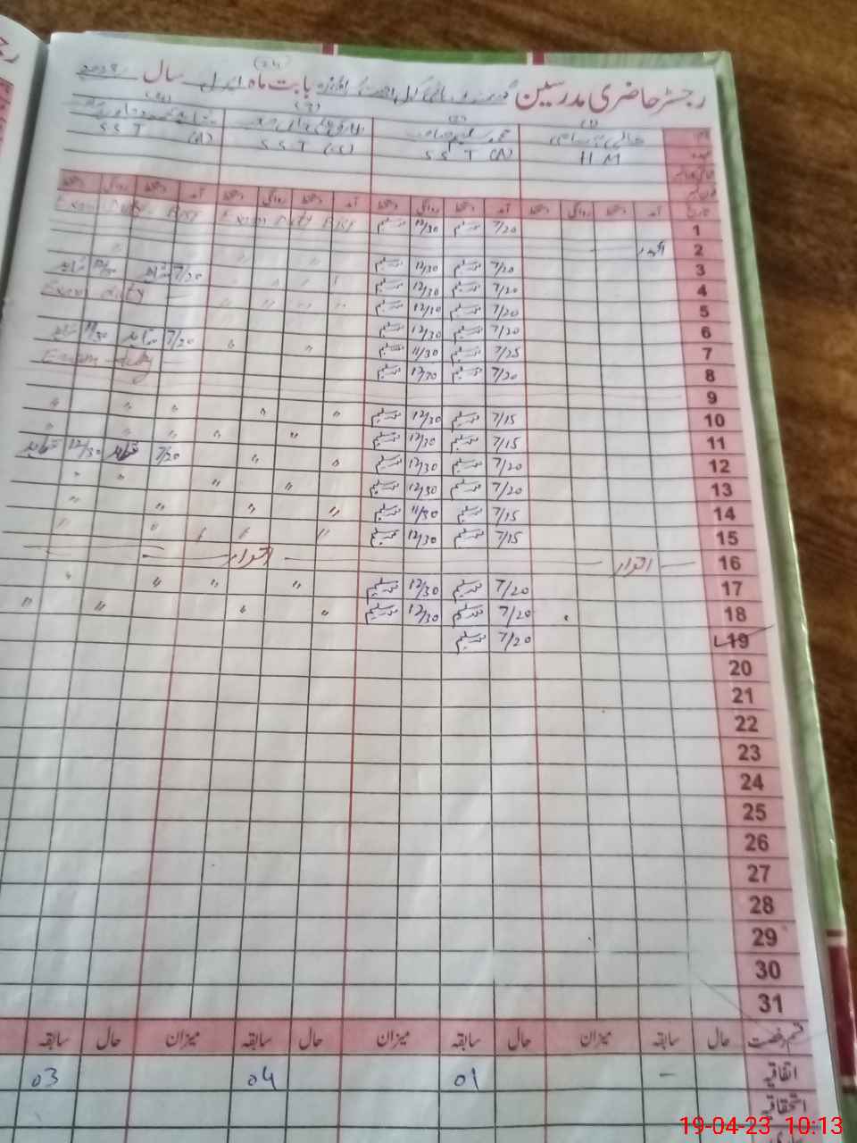| 41**** | Ta**** Al**** Kh**** | SST | Regular | 0 | 0 | 0 | 0 | 0 | 0 | 0 | 0 | 0 | Exam Duty |