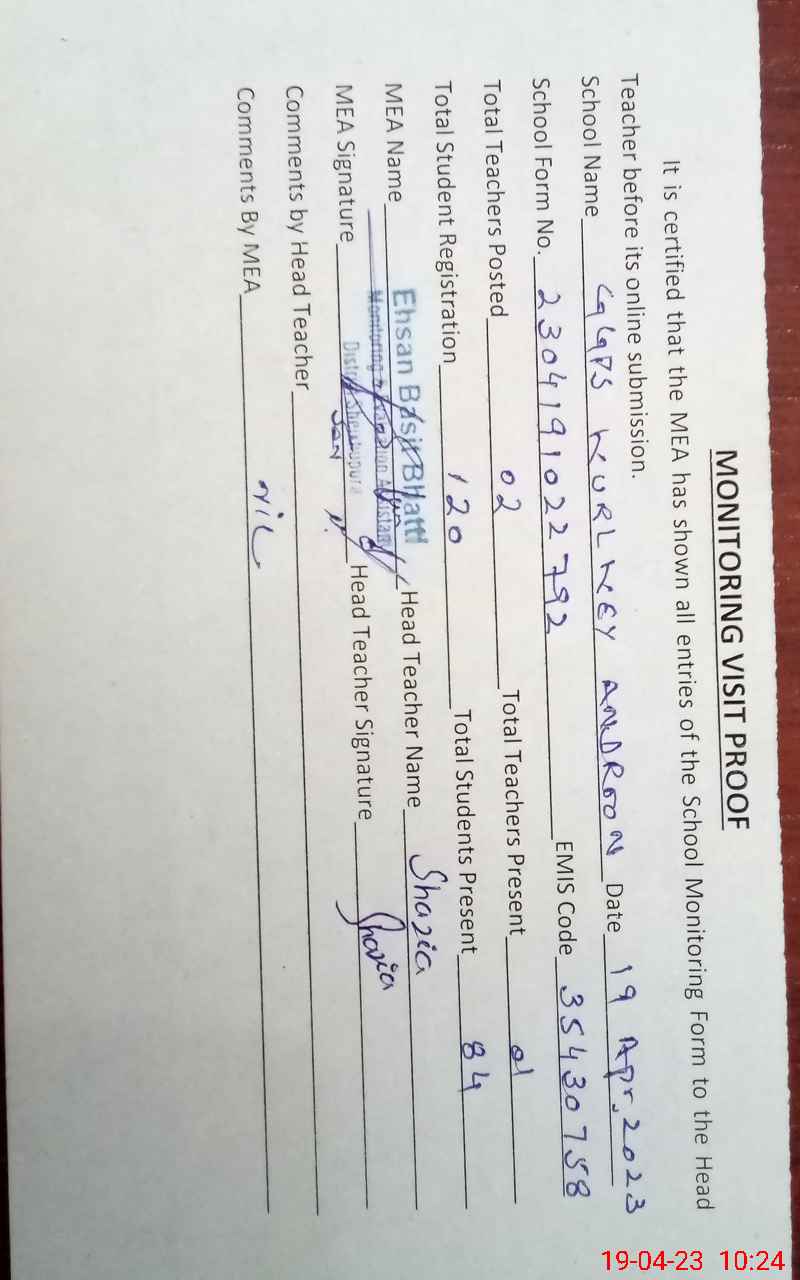 | EMIS Code: 35430758 | Name of School: GGPS KURLKEY ANDROON | |||