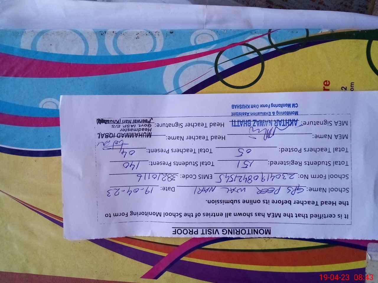| EMIS Code: 38210116 | Name of School: GPS PEER WAL NARI | |||