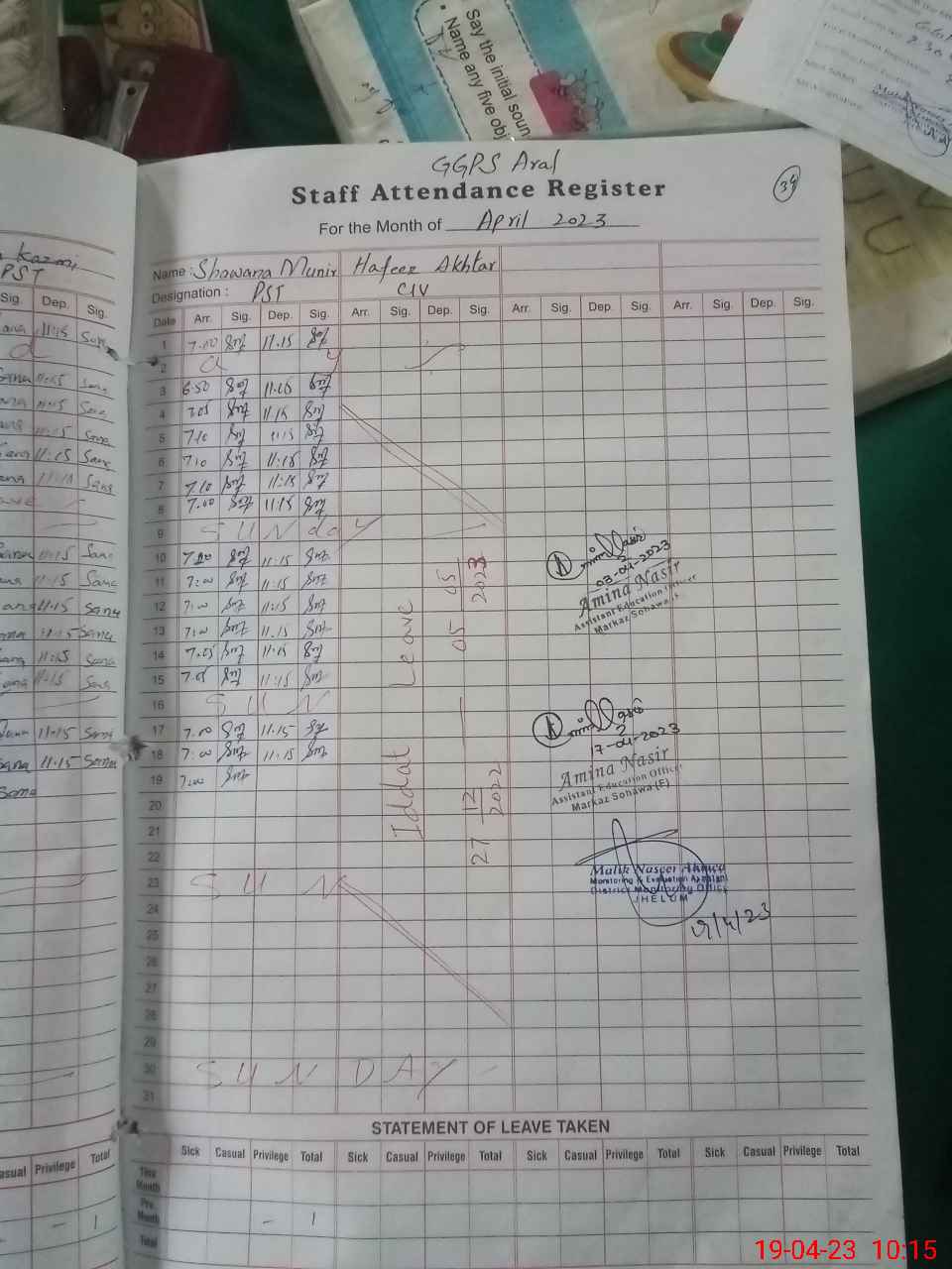 | Name: Sh**** Mu**** Designation: (School Headmaster's/Headmistress's) H T Phone/Cell Number: 03**** |