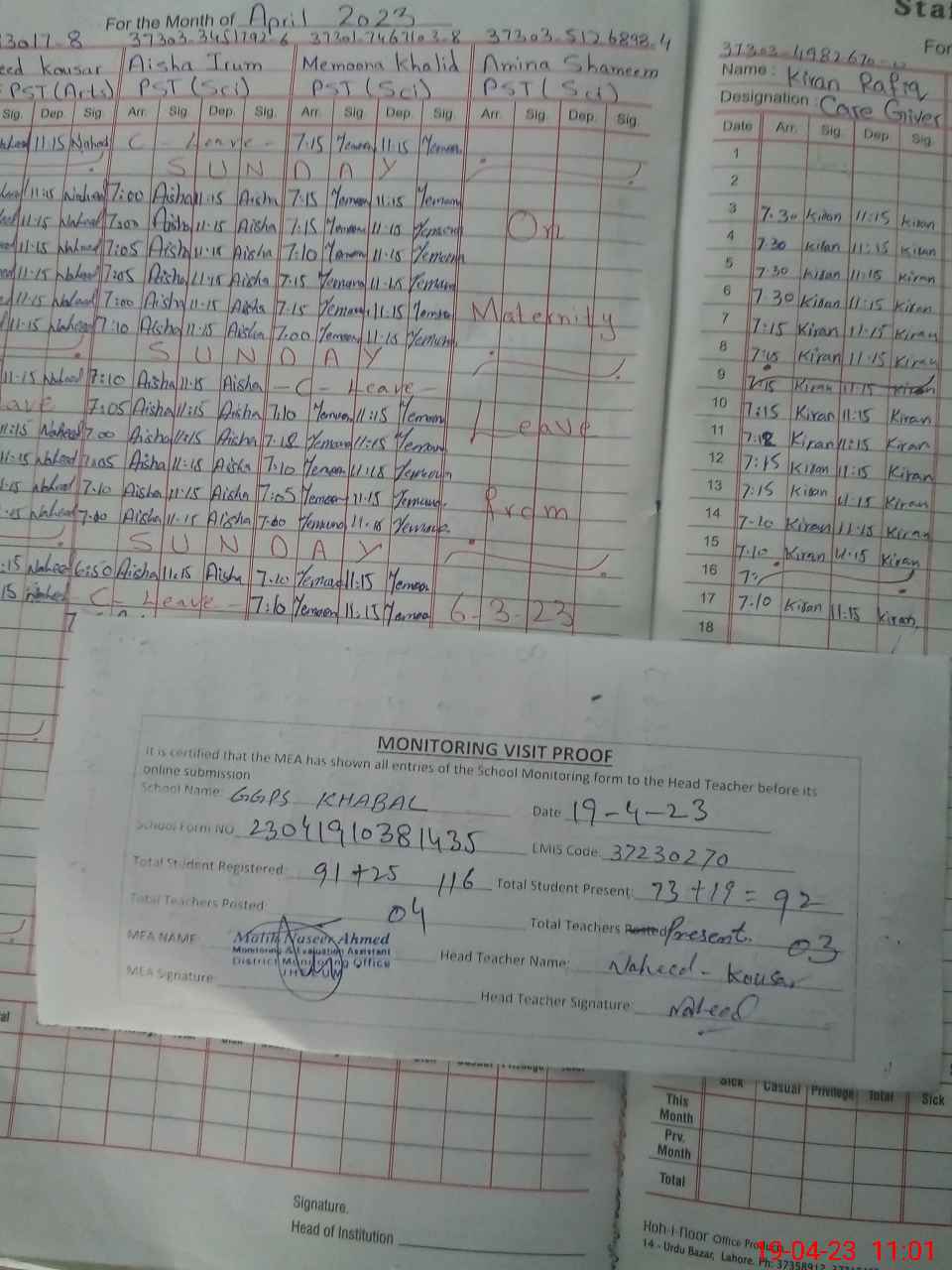 | Attendance Register | Head Teacher | MEA with School | Visit Proof |