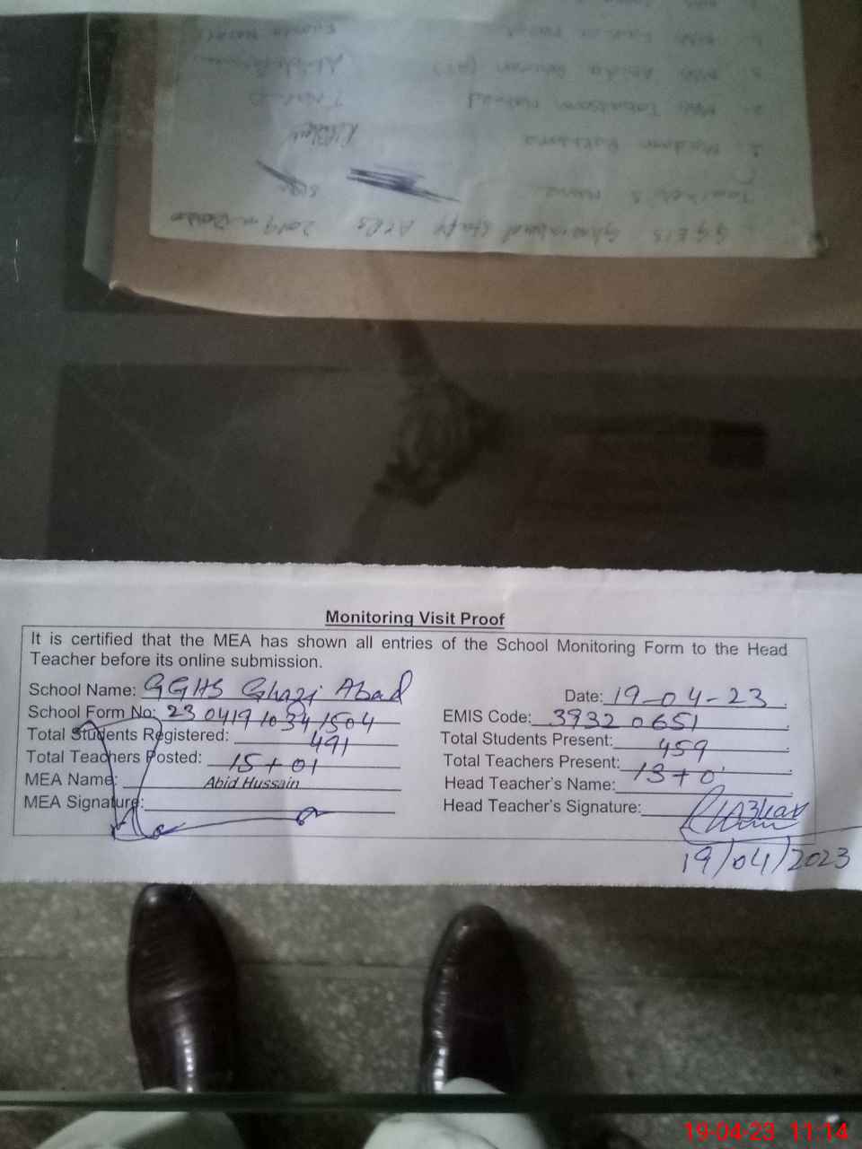 | Attendance Register | Head Teacher | MEA with School | Visit Proof |