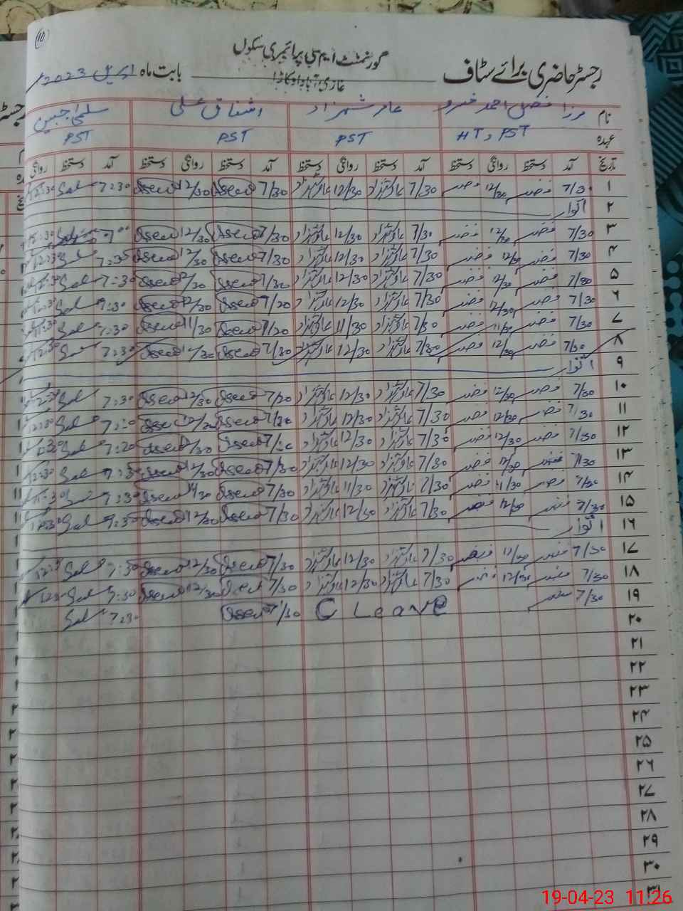 | Name: As**** Al**** Designation: (School Headmaster's/Headmistress's) PST Phone/Cell Number: 03**** |