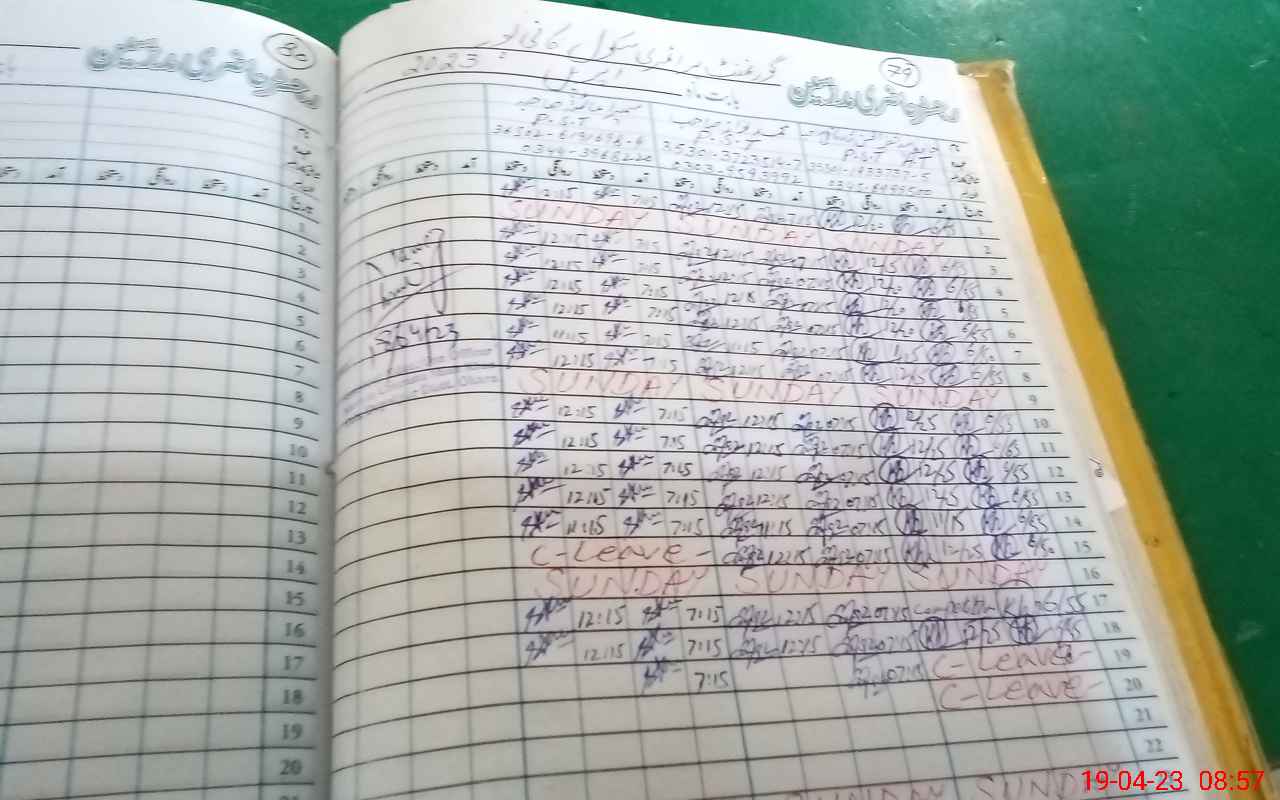 | CNIC | Full Name | Designation | R/C | Absence During Last Calender Month |