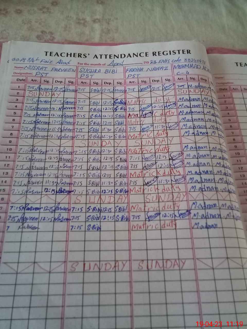 | 33**** | Fa**** Na**** | PST | Regular | 0 | 0 | 0 | 0 | 0 | 0 | 0 | 0 | 0 | Exam Duty |