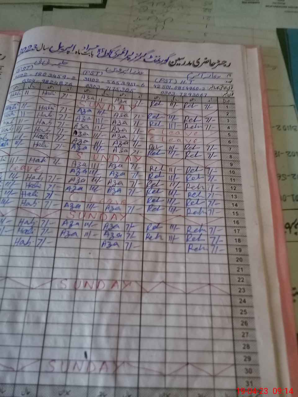 | CNIC | Full Name | Designation | R/C | Absence During Last Calender Month |