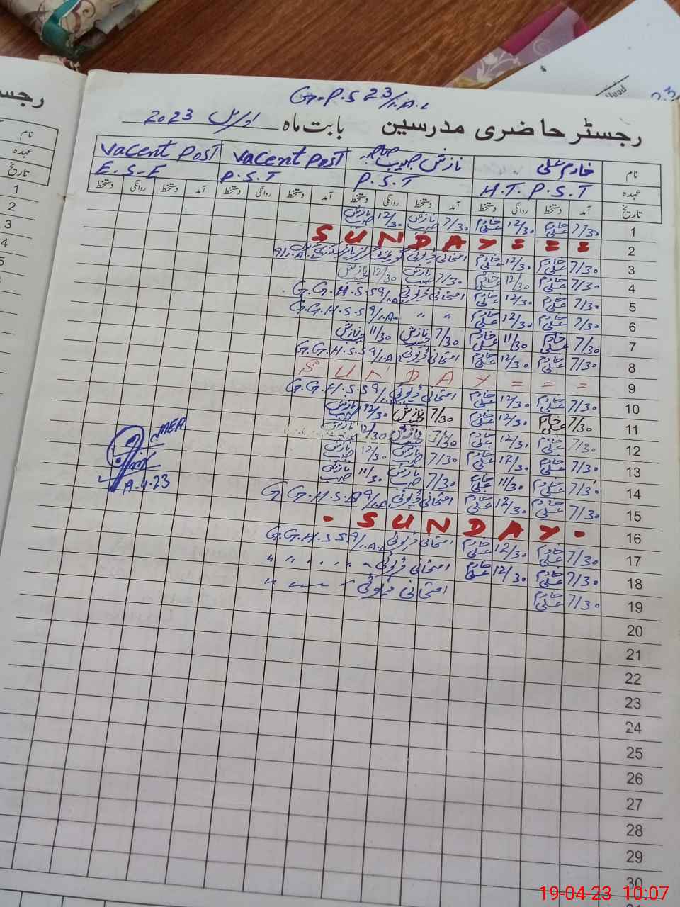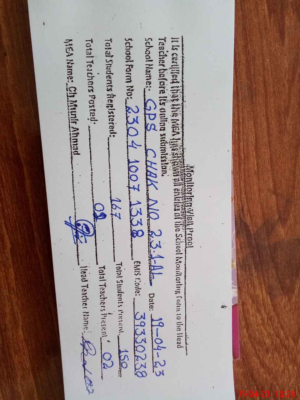 | EMIS Code: 39330238 | Name of School: GPS CHAK NO. 23/1-AL | |||