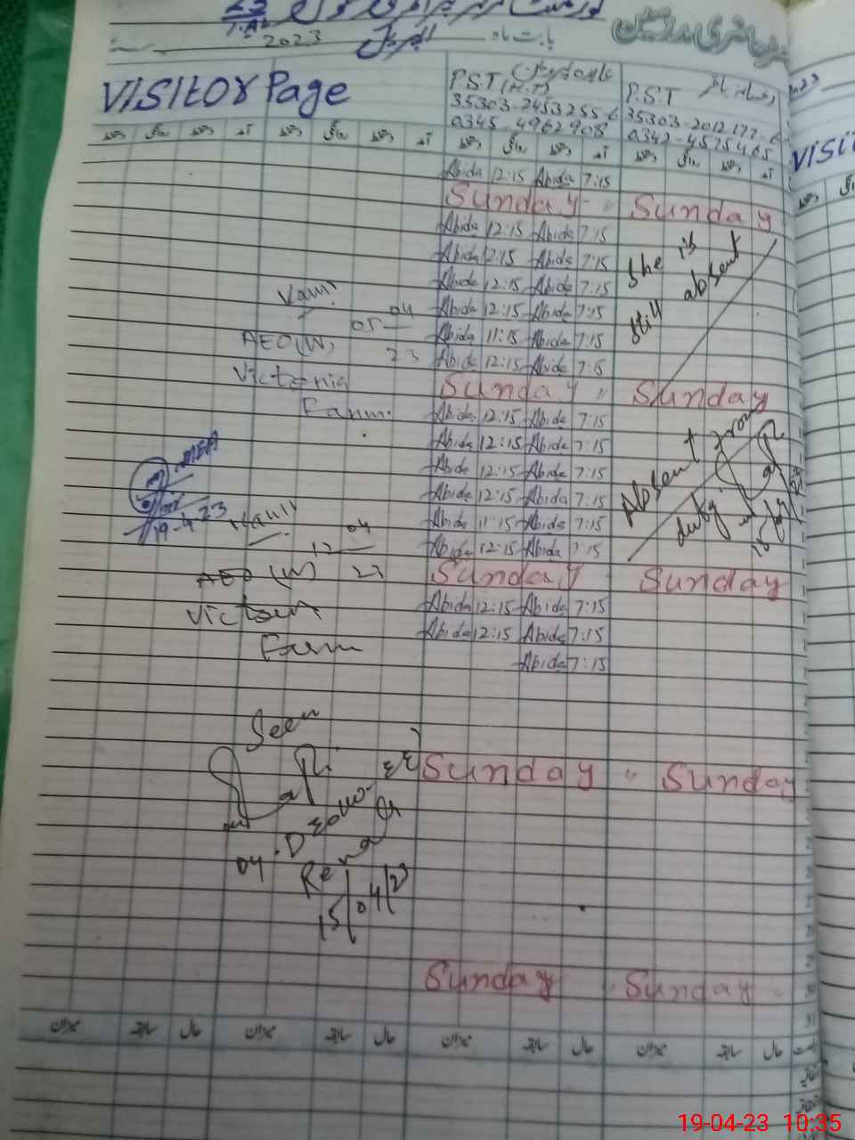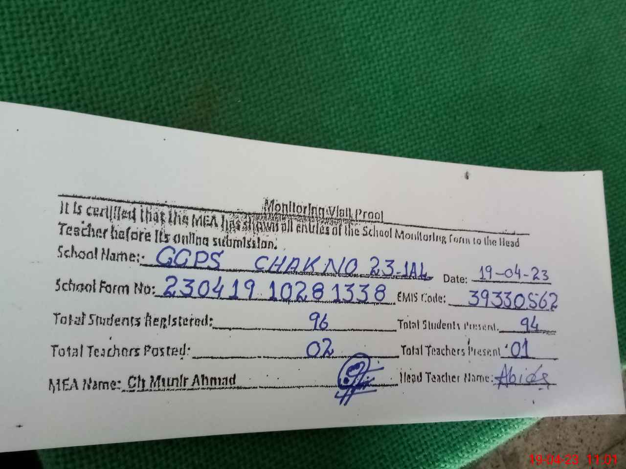 | Name: Ab**** Pa**** Designation: (School Headmaster's/Headmistress's) PST H.T Phone/Cell Number: 03**** |