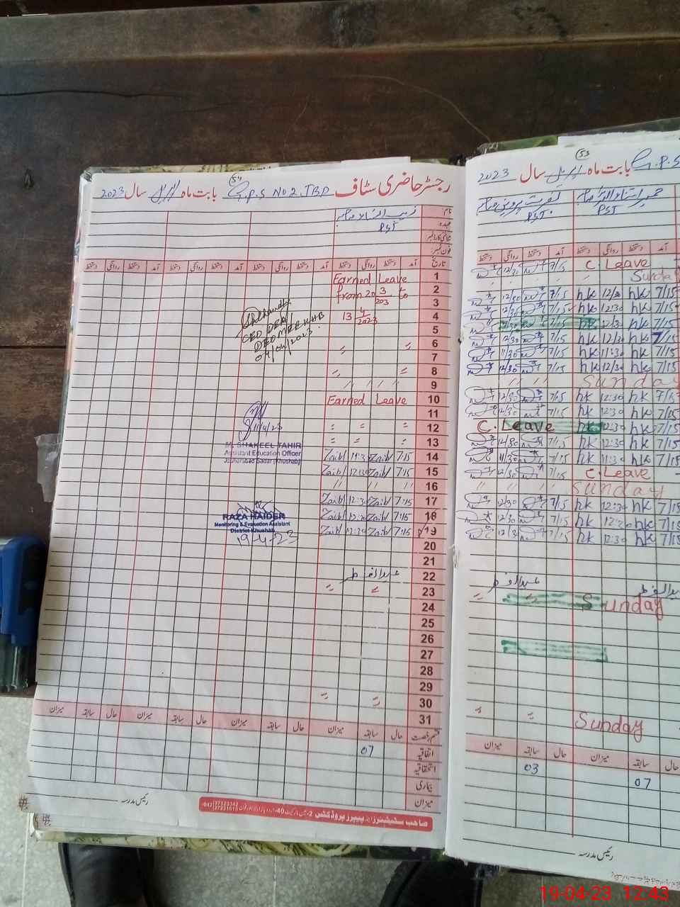 | CNIC | Full Name | Designation | R/C | Absence During Last Calender Month |