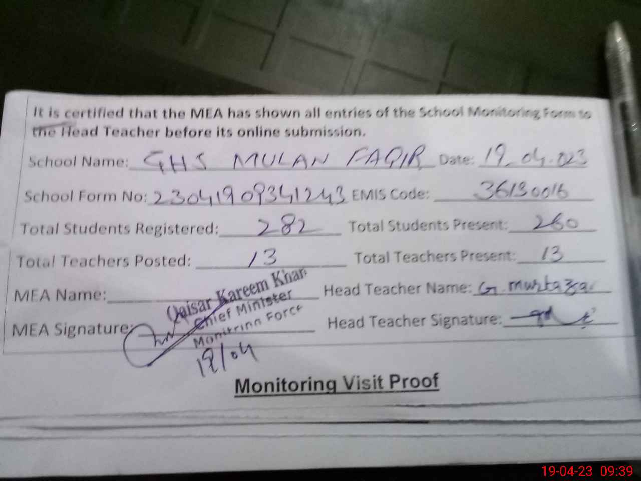| EMIS Code: 36130016 | Name of School: GHS MULLAN FAQIR BUDHLA MULTAN | |||