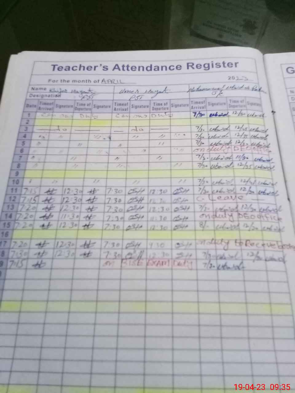| 36**** | Um**** Ha**** | PST | Regular | 0 | 0 | 0 | 0 | 0 | 0 | 0 | 0 | 0 | Exam Duty |