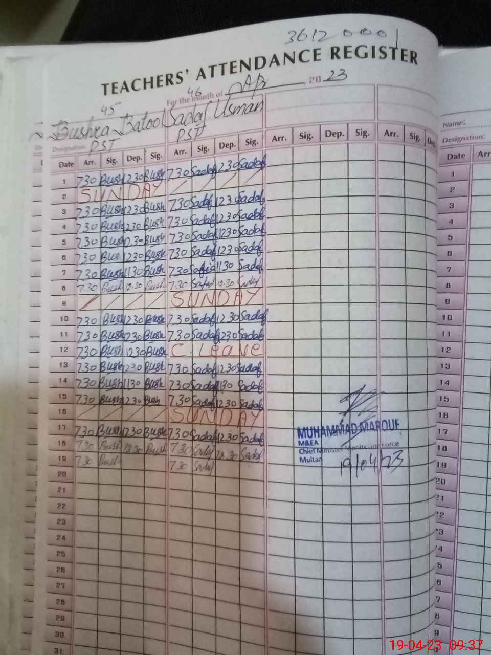 | 36**** | Mu**** Kh**** | EST | Regular | 0 | 0 | 0 | 0 | 0 | 0 | 0 | 0 | 0 | Exam Duty |