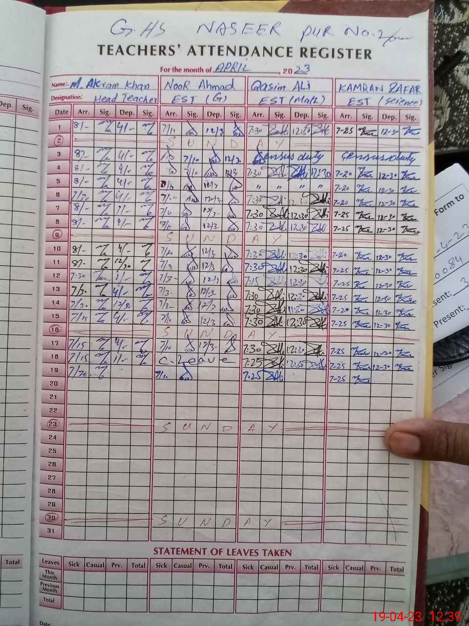 | 36**** | Mu**** Ra**** | PST | Regular | 0 | 0 | 0 | 0 | 0 | 0 | 0 | 0 | 0 | Exam Duty |