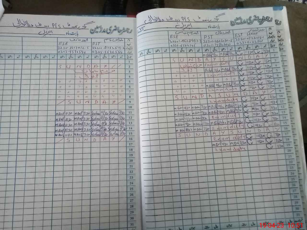 | 32**** | Mu**** Bi**** | PST | Regular | 0 | 3 | 0 | 0 | 0 | 0 | 0 | 0 | 0 | Exam Duty |