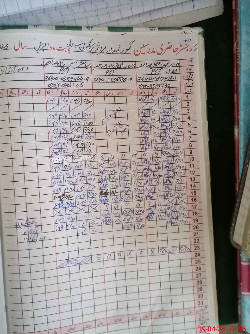 | Name: MAF**** Designation: (School Headmaster's/Headmistress's) PST Phone/Cell Number: 03**** |