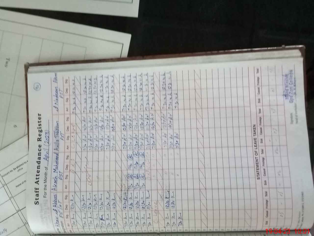 | Leave | Duty | Absent | Maternity | Medical | Ex- Pak |