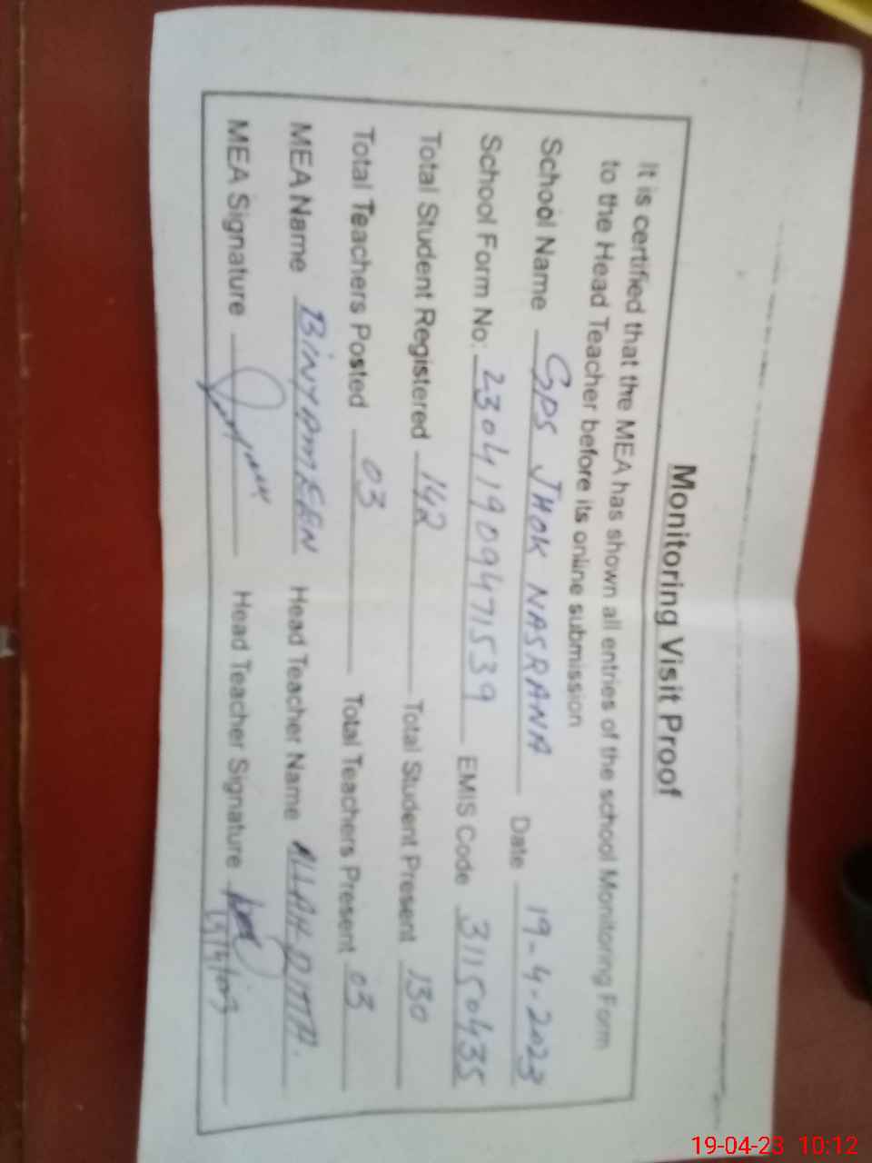 | EMIS Code: 31150435 | Name of School: GPS JHOK NASRANA | |||