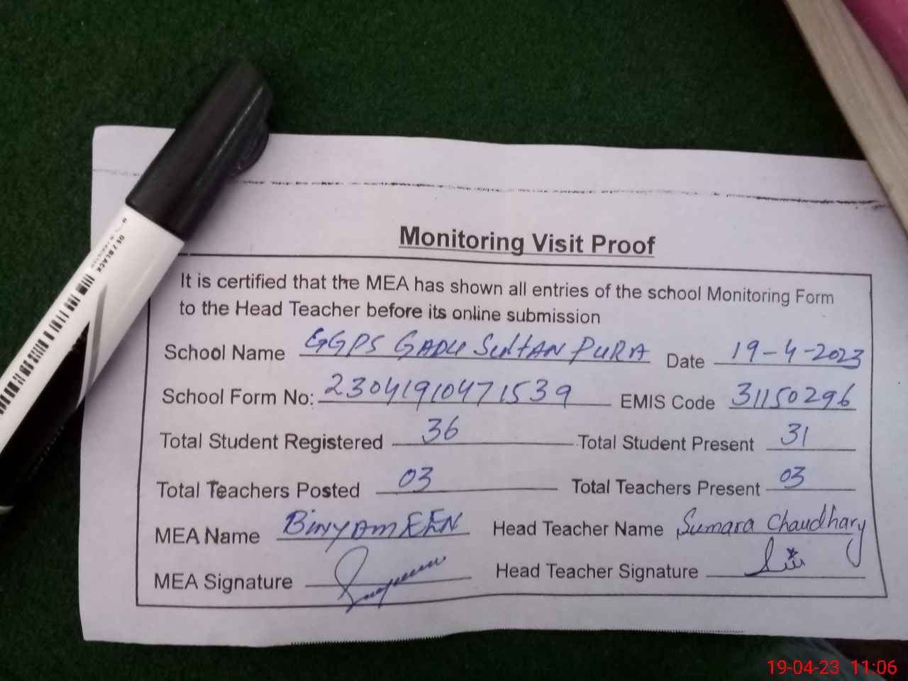 | EMIS Code: 31150296 | Name of School: GGPS SADHU SULTAN PURA | |||