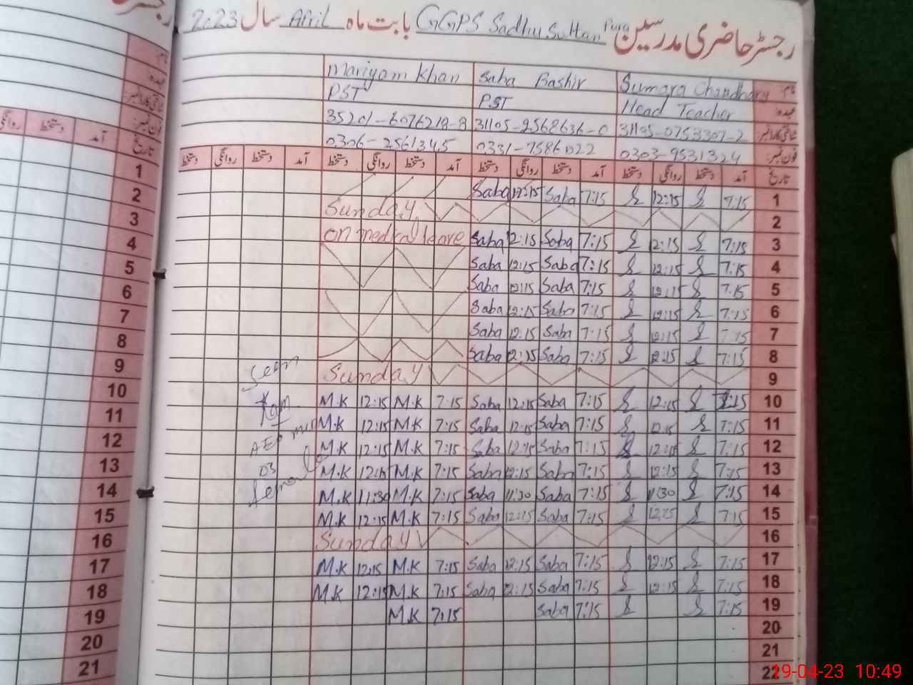| Name: Ma**** Kh**** Designation: (School Headmaster's/Headmistress's) PST Phone/Cell Number: 03**** |