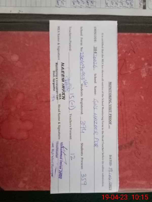 | EMIS Code: 38470026 | Name of School: GHS HAZOOR PUR | |||