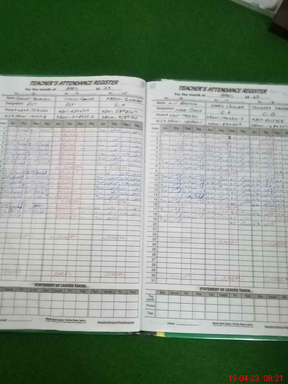 | CNIC | Full Name | Designation | R/C | Absence During Last Calender Month |
