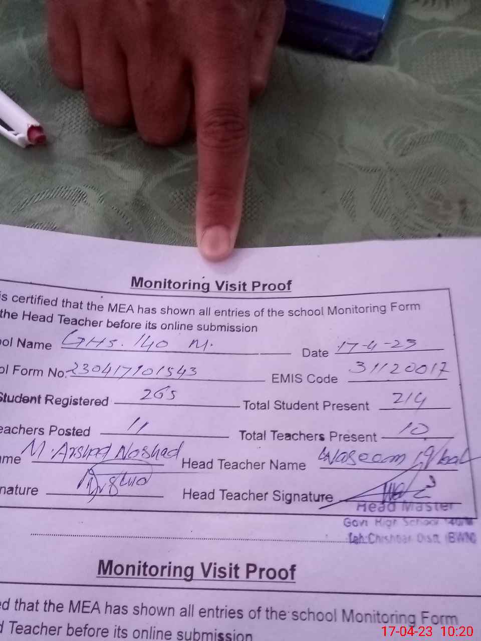 | EMIS Code: 31120017 | Name of School: GHS CHAK NO. 140 MURAD | |||