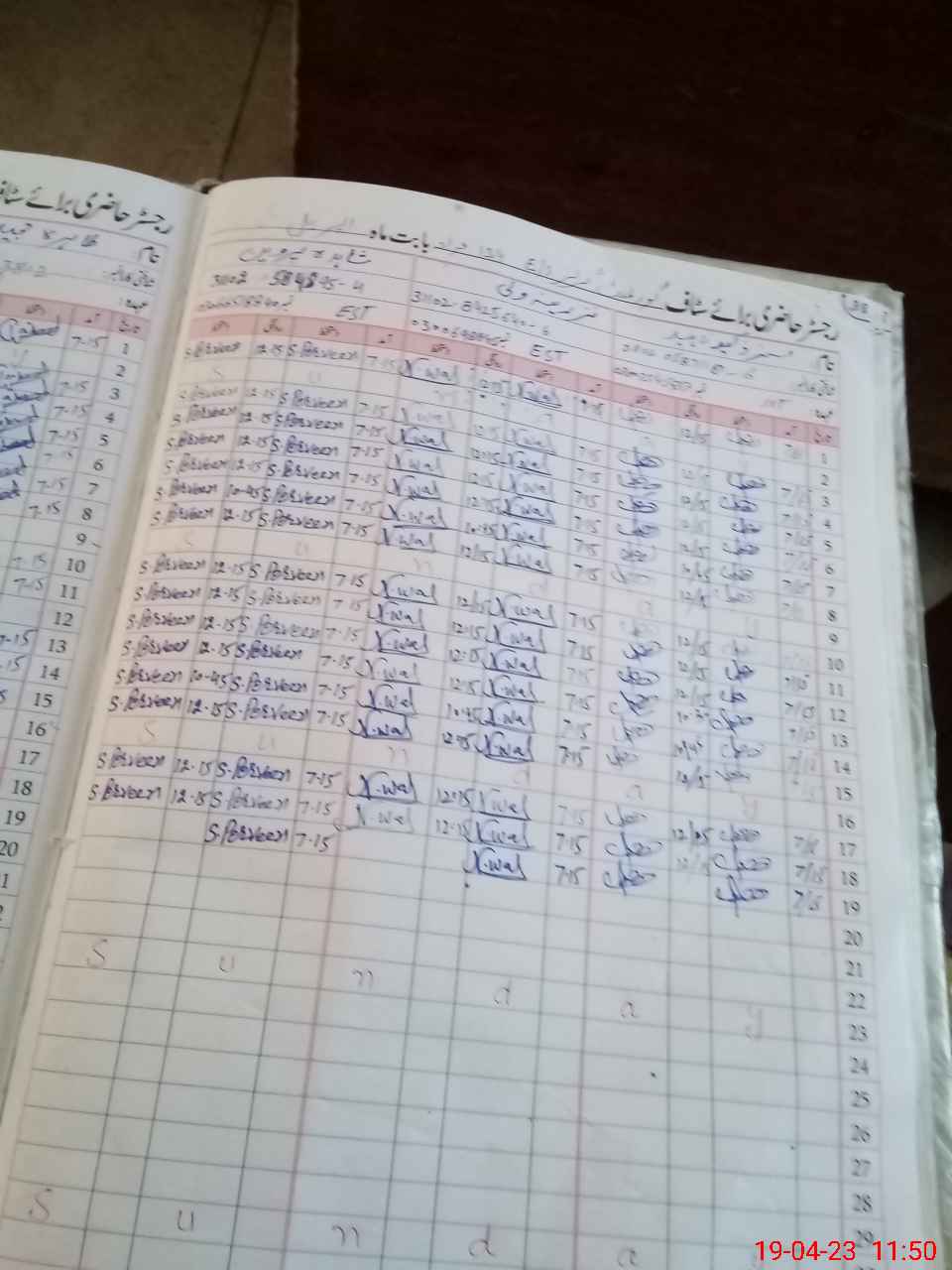 | CNIC | Full Name | Designation | R/C | Absence During Last Calender Month |