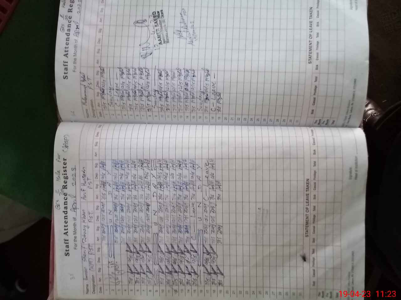 | CNIC | Full Name | Designation | R/C | Absence During Last Calender Month |
