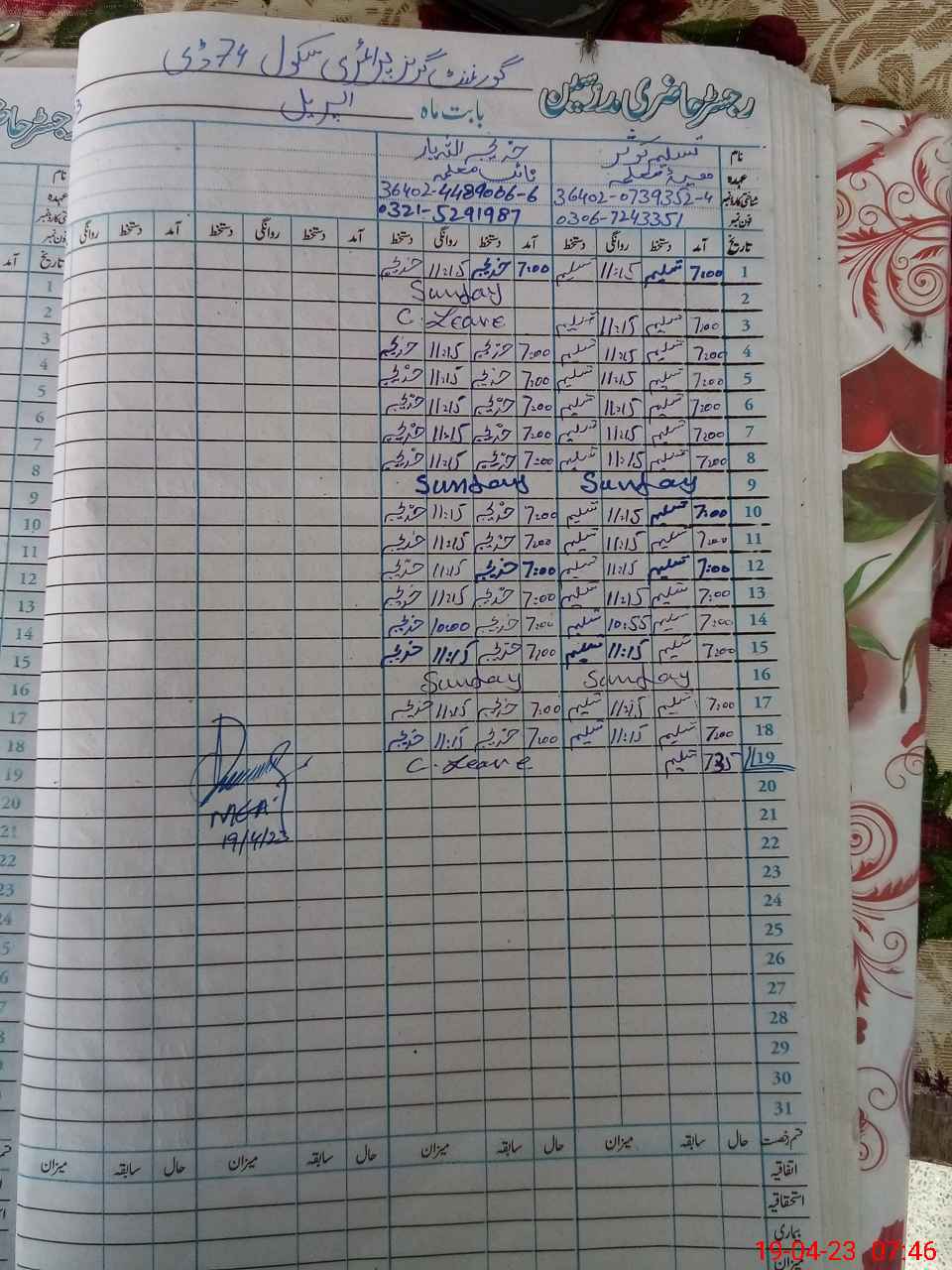 | Name: Ta**** Ka**** Designation: (School Headmaster's/Headmistress's) PST Phone/Cell Number: 03**** |