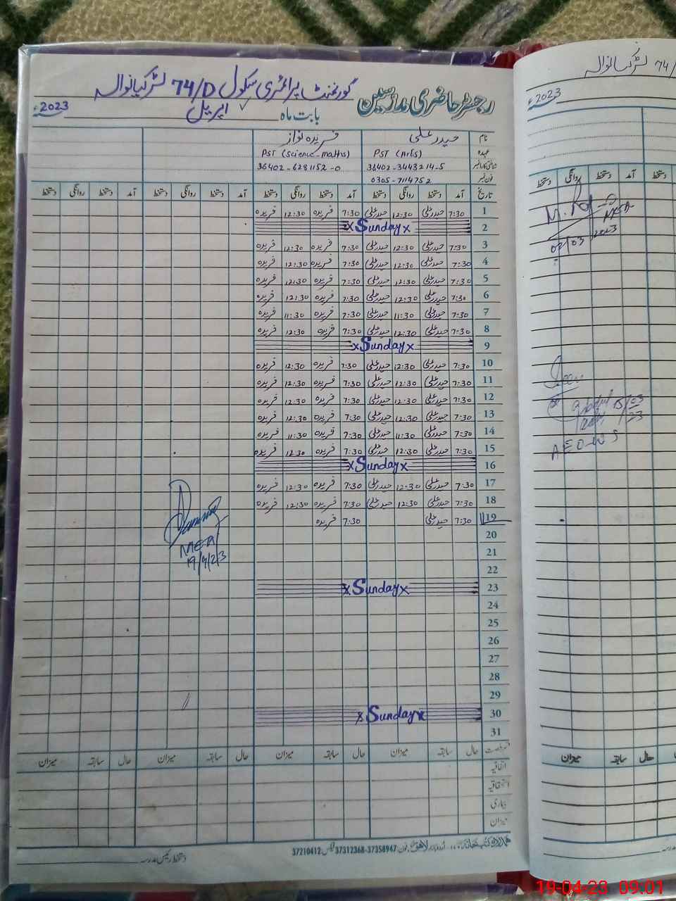 | Name: HA**** AL**** Designation: (School Headmaster's/Headmistress's) PST Phone/Cell Number: 03**** |