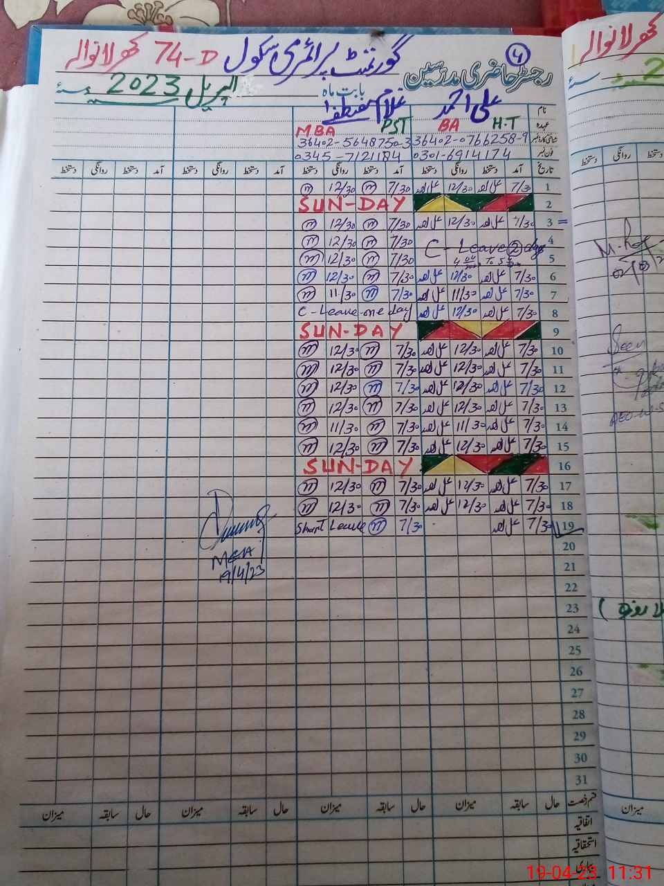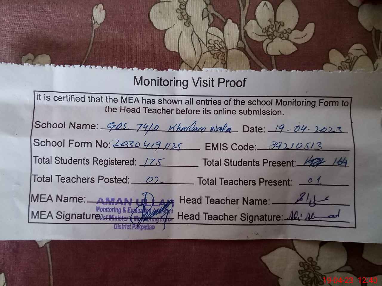 | EMIS Code: 39210513 | Name of School: GPS CHAK NO.74 D KHARLAN WALA | |||