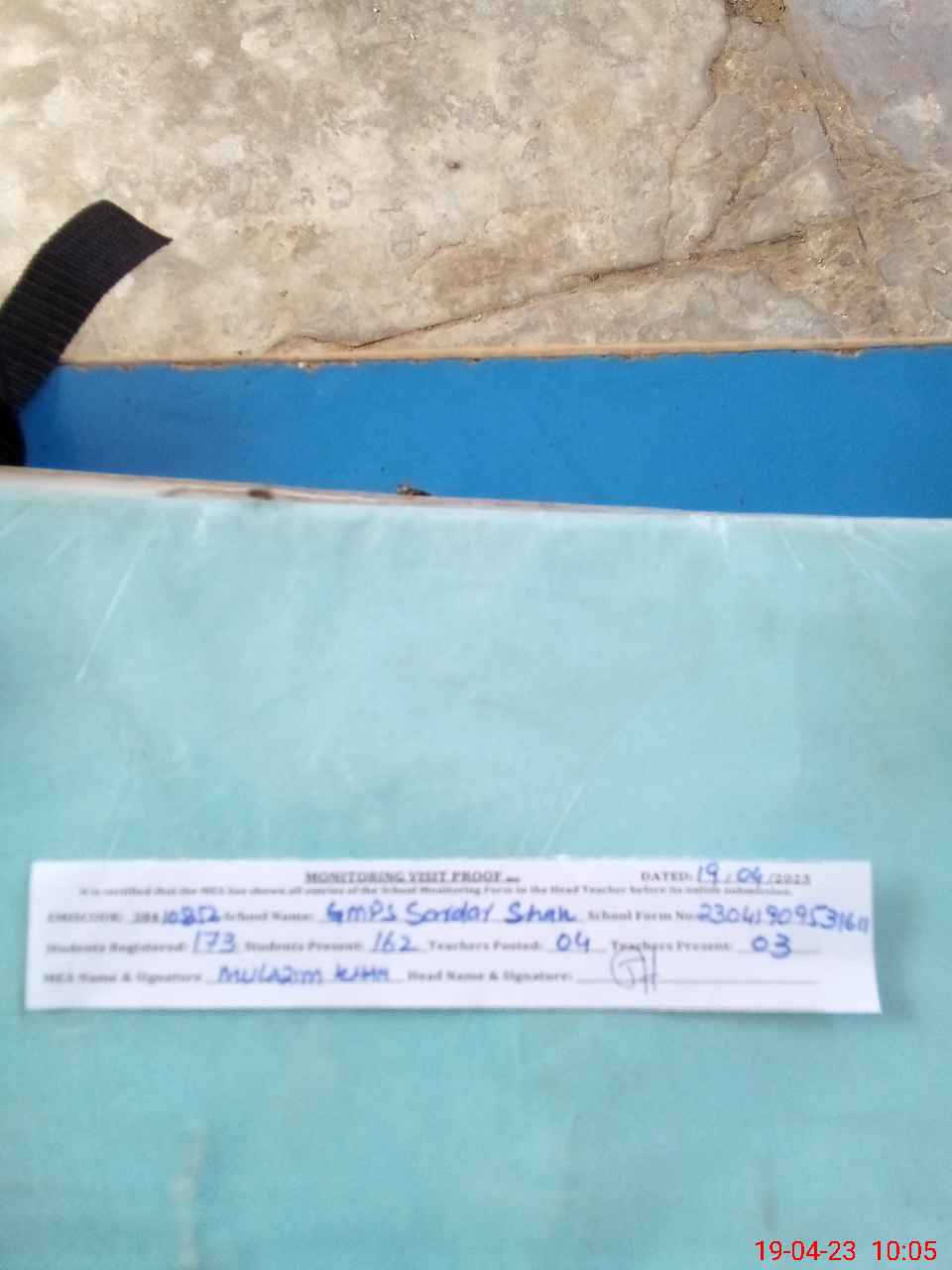 | EMIS Code: 38410852 | Name of School: GMPS COLONY SARDAR SHAH | |||