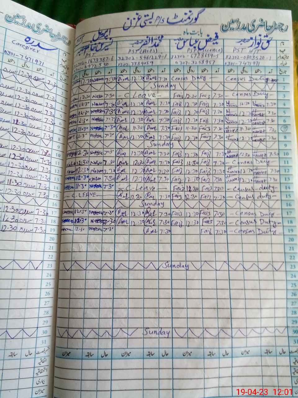 | CNIC | Full Name | Designation | R/C | Absence During Last Calender Month |